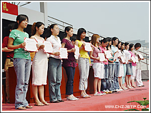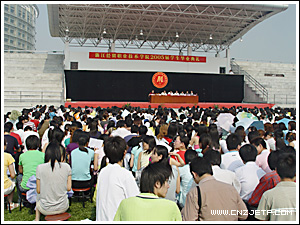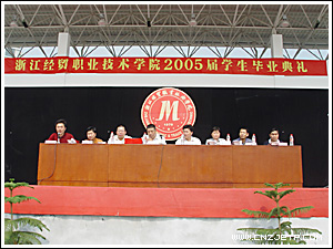 教师代表工商管理系谢芳老师和2005届毕业生代表国际贸易200203班毛利芳同学分别在会上作了发言。会上还宣布了2005届省、校优秀毕业生名单,学院领导分别为优秀毕业生颁奖。