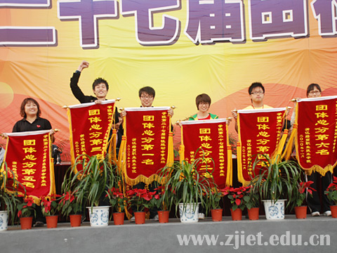 在为期两天的比赛中,运动员们斗志昂扬、不畏挑战,展现了我院师生员工高昂的运动热情,为大家呈现了一场“更快、更高、更强”的体育盛宴。经过激烈角逐,计算机队以总分96分获得团体第一名,酒店管理队和国际贸易2队分获二、三名。经运动会组委会评选,信息技术系和国际贸易系代表队获最佳组织奖:刘佳伟和陆苏丹两位同学分获最佳男、女运动员。在本届运动会中,金融保险队的何益枫同学打破了已保持24年之久的男子跳高学院田径项目最高纪录,酒店管理队陆苏丹同学打破女子3000米学院田径项目最高纪录,应用英语队女子4*400米代表队打破学院田径运动会该项目纪录。