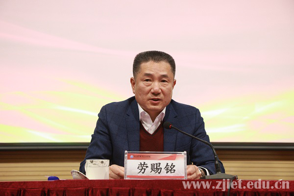 党委书记劳赐铭作题为《凝心聚力赶考路 奋发有为新征程》讲话。他充分肯定了学校在过去一年里取得的优异成绩,并结合高等职业教育发展新形势,站在学校发展全局角度,对学校当前存在的问题进行了深入分析,从党建引领全面从严治党新气象、提质培优打造教学新成果、产教融合寻求开放办学新突破、立德树人构筑“三全育人”新格局、主动作为彰显党员干部新担当等五个方面对学校明年的工作进行了部署和强调。他激励全体“经贸人”要以敢为人先的执着,在新的赶考路上,勇执“奋进之笔”,勇担“奋进之责”,以更高的研究、更实的作风、更优的成果,迎接党的二十大胜利召开。