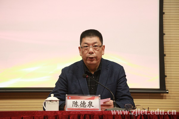 校长陈德泉作学校2021年工作总结与2022年工作展望。陈德泉从打造党建引领“经贸标杆”、打造立德树人“经贸样板”、夯实提质培优“经贸内核”、构建协同育人“经贸体系”、激发干事创业“经贸活力”、铸就业务过硬“经贸铁军”、擦亮特色鲜明“经贸品牌”、拓宽开放办学“经贸路径”、诠释有为敢为“经贸担当”、书写为农服务“经贸情怀”、提升和谐幸福“经贸指数”等11个方面对学校2021年度的工作做了细致全面的回顾和总结,并以实施“1138N”计划为主线,对2022年度学校重点工作进行系统布置,为学校在“十四五”规划关键之年再创佳绩指明了前行路径。
