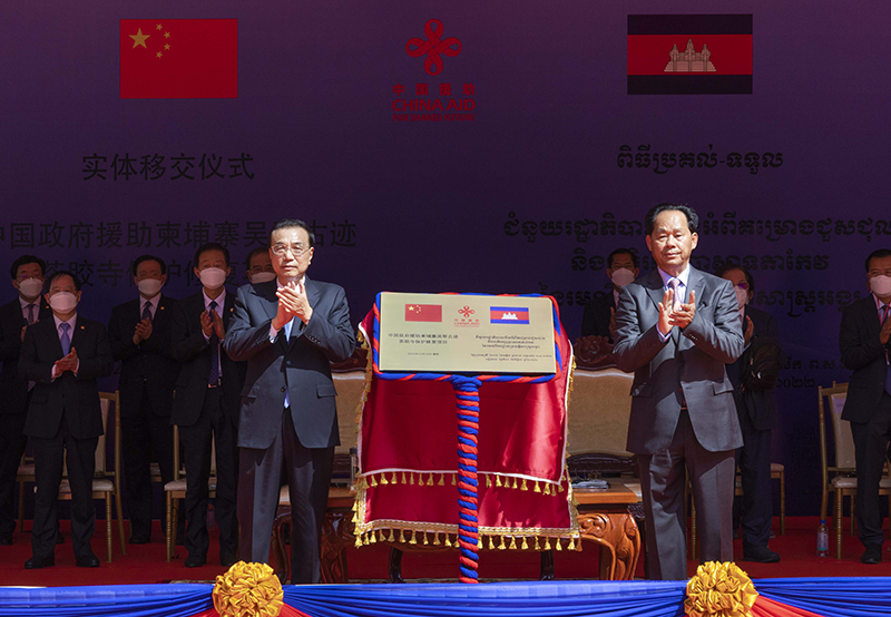 李克强表示,吴哥古迹不仅是灿烂高棉文明的集中呈现,更是柬埔寨民族的骄傲。长期以来,东西方不少国家都积极参与了吴哥古迹的保护和修复工作。今天我们移交的茶胶寺项目,是在联合国教科文组织保护吴哥古迹国际行动框架下,中国政府实施的第二处修复项目。这是一件有利于柬埔寨、有利于中柬友好、有利于文明交流互鉴的好事。希望吴哥古迹作为人类文明的瑰宝焕发更大生机。