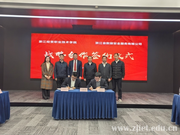 12月20日下午,学校校长陈德泉带队赴杭州市钢铁集团有限公司(以下简称“杭钢集团”)调研,并出席学校与浙江省数据安全服务有限公司(以下简称“浙江数安”)合作签约仪式。党委委员、副校长林锋,教务处、商务智能学院等相关负责人参加签约与座谈。